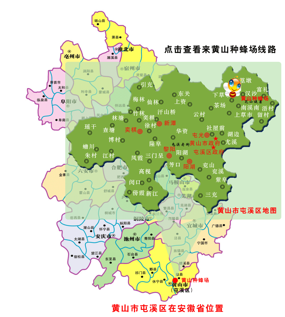安徽省黄山市种蜂科学研究所黄山市黄山种蜂场黄山市中蜂原种场黄山市屯溪区蜂业协会黄山市屯溪区中蜂蜂业专业合作社(蜂具厂) 邮编:245000场址:安徽省黄山市屯溪区屯光镇汉沙村朱国军(邮局汇款地址及收款人)电话:0559-2341046传真:0559-2332046所长、场长、会长、董事长:朱国军手机:13805596576来场路线:从黄山市乘"游1路公交"车→黄口大桥(2公里)→黄山学校(1公里)→黄山种蜂场(6公里)